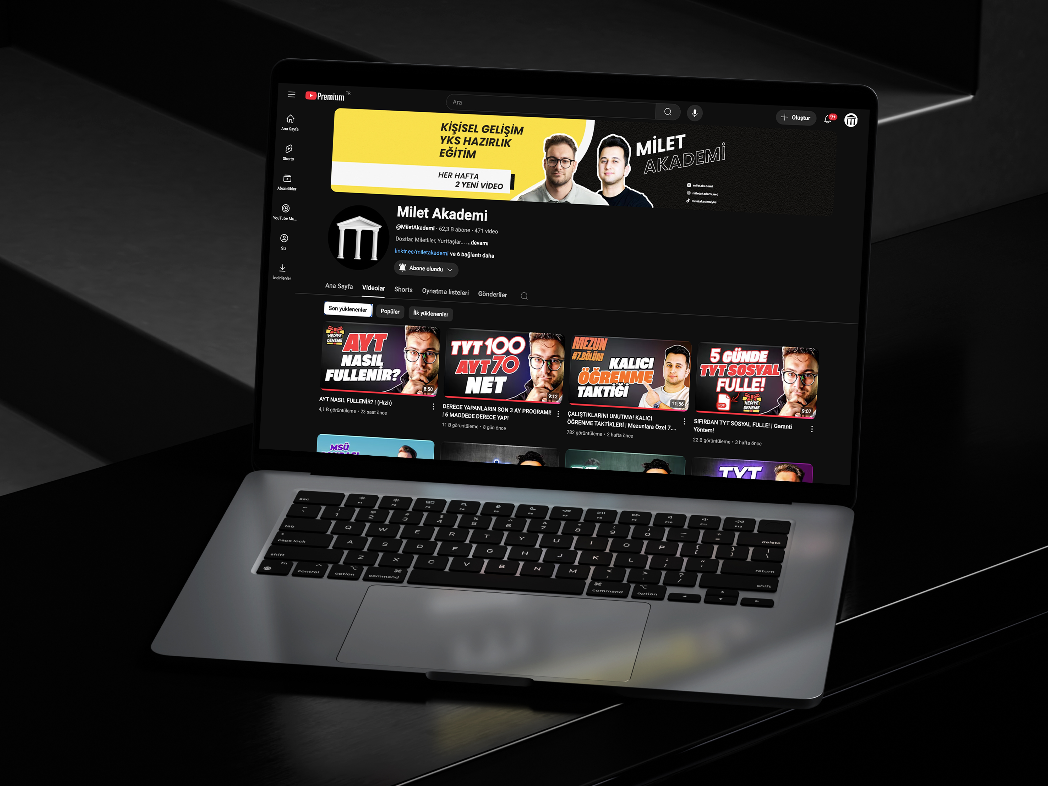 Düzenli sosyal medya yönetimi ve YouTube video içerikleriyle, Milet Akademi’nin öğrencilerle kurduğu güçlü bağ dijital dünyaya taşındı. İçerik üretiminden planlamaya kadar her adımda, güven veren bir dijital kimlik inşa ettik.